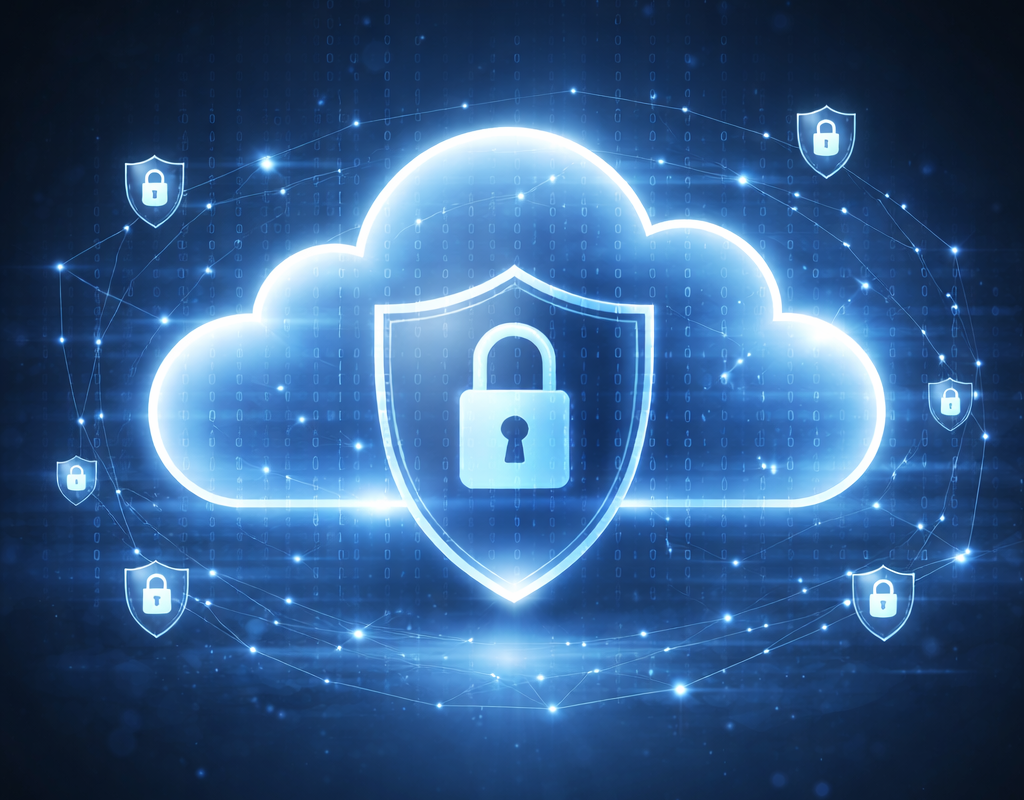 cloud security concept showing data protection in a digital cloud network